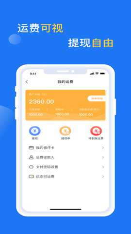 4、提供可视化的运费信息,支持自由提现和给指定物流商下单。