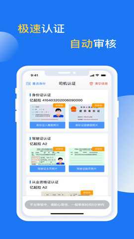 2、只需进行几个简单步骤即可认证车辆信息,完成认证后即可在线接单。