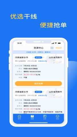 1、司机可以在应用中优选干线,便捷抢单,找到来自全国范围内的货源。