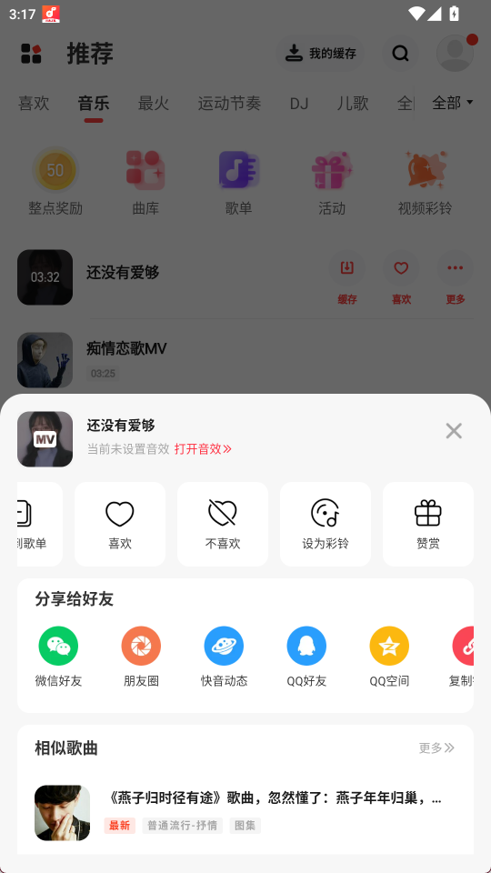 2、点击更多可以设为铃声、分析歌曲