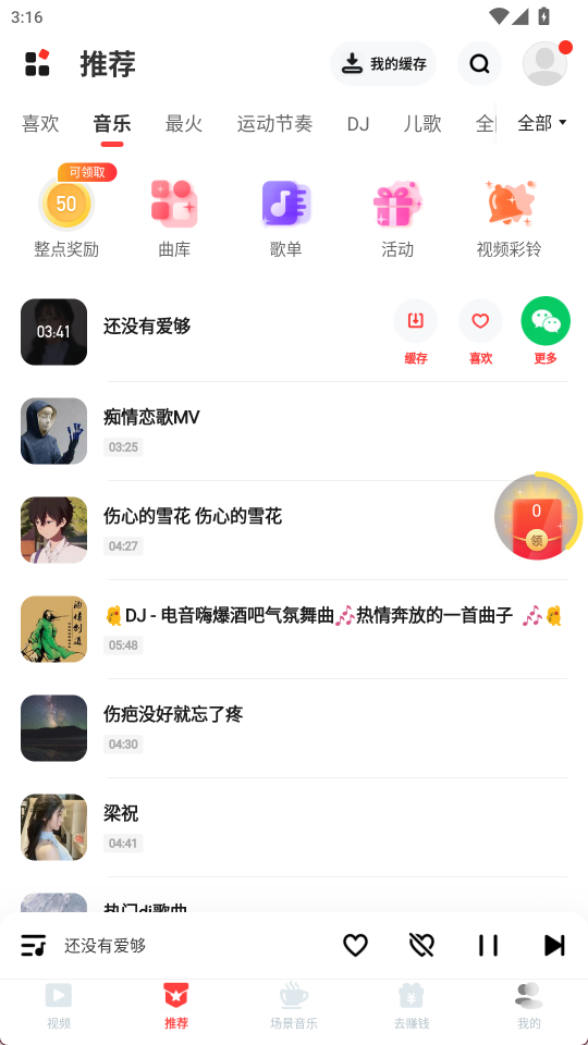 1、点击歌曲进行播放,可以点击缓存下载到本地
