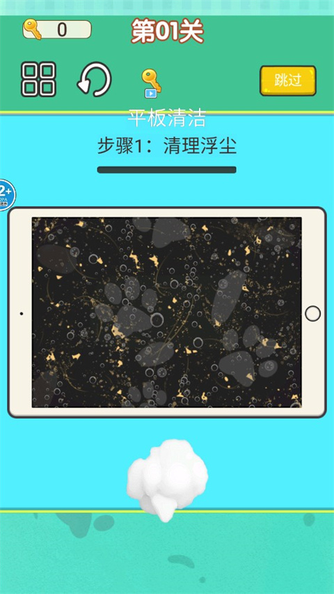 3、这里我们进入第一关平板清洁,首先要清理浮尘;