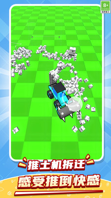 开荒暴富游戏等你来线上开启这个欢乐解压的拆迁破坏模拟体验,将眼前的荒地全部推倒重建,一起享受这个酣畅淋漓的开荒挑战时刻吧,成功收集更多的金币,可以用来购买不同的推土机以及挖掘装备,让你轻松暴富就是这么的过瘾,保证你会喜欢哦。