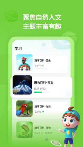 2、该应用程序的主题包括天文、昆虫、鸟类、植物等,让孩子在趣味视频学习中获得沉浸观看体验。