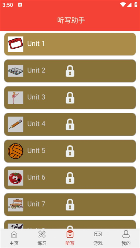 3、选定教材后即可开始系统学习,每册教材都包含专属词汇和单元课程,循序渐进提升英语能力。