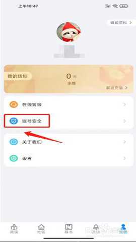 进入书香博士app我的,点击【账号安全】。