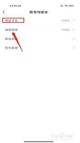 进入账号与安全,点击【绑定手机】。