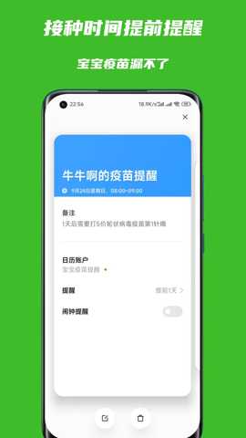 设置接种提醒:应用程序可能提供接种提醒功能,您可以设置接种提醒时间,应用程序会提醒您宝宝下一次接种疫苗的时间。