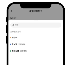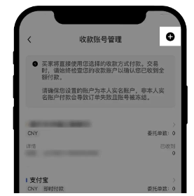 点击右上角“+”―【选择货币】、【收款方式】―可选择银行卡/支付宝/微信支付三种方式,按要求填写相关信息和提示即可完成绑定。