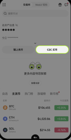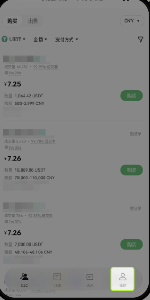 绑定收付款方式: 打开欧易 App,点击【买币】-【C2C买币】-右下角【我的】图标-【收款账号管理】。