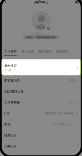 身份认证: 注意:实人认证和视频认证需在 App 端进行认证。
