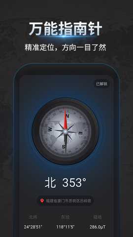 3、你身处何地,只需轻轻一按,指南针便能迅速捕捉到你的地理位置,显示出当前的经纬度、磁场强度等信息。