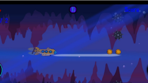 2、在遇到危险或金币的时候,点击上下两个键子进行移动,潜艇会自动向前行驶,