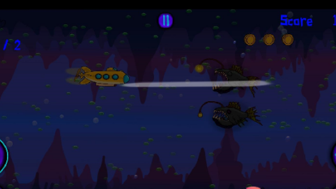 2、探索鱼类的物种以及一些危险,潜艇上装置着几颗鱼雷和防御装置,