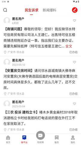 3、同时还有问政爆料板块,在这里大家可以畅所欲言,在生活中有任何都可以发布,相关工作人员会看见处理解决。