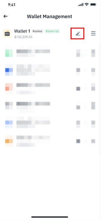 1. 在【钱包管理】页面,点击左上角的【编辑】图标。
