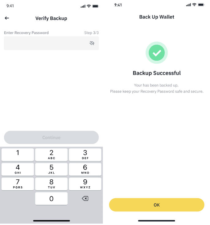 4. 备份钱包后,对备份进行验证。完成上述步骤后,钱包备份过程即已完成。请妥善保管好您的恢复密码。