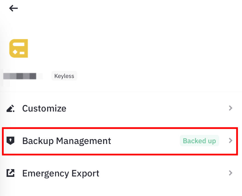 1. 在【首页】或【资产】页面,点击左上角的【设置】,然后点击【钱包管理】。在【钱包管理】页面,如果您已成功备份钱包,您将看到“已备份”标签。