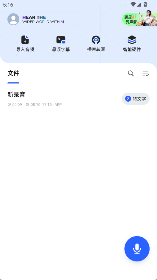 3、录音完成后在文件列表里找到录音,一键点击转文字