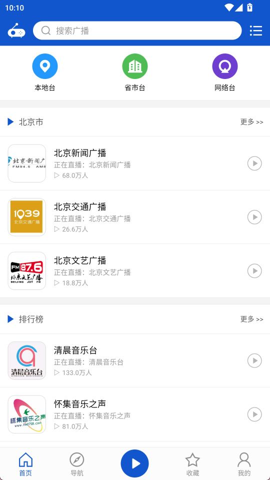 1、首页提供了本地、省市等电台入口