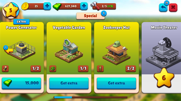 7、每次修建建筑都会获得经验值,当经验值满后就可以升级解锁新的建筑。
