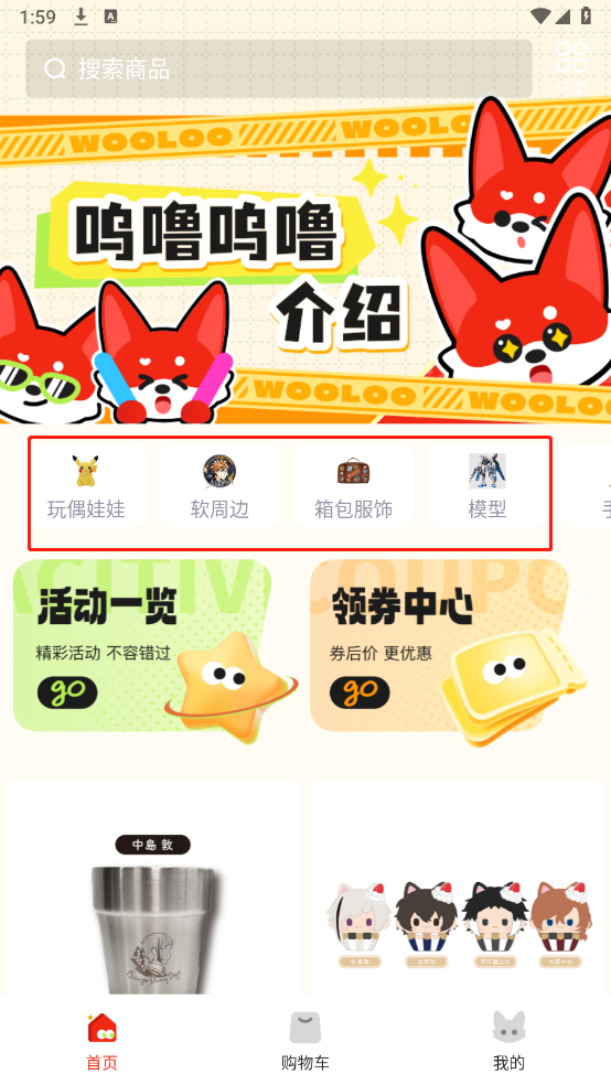 2、进入软件首页,可看到多种不同类型的二次元商品,涵盖各类ACG相关好物,便于挑选。