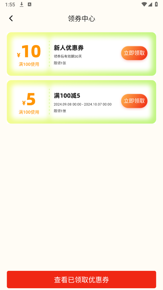 6、在首页点击“领券中心”,可领取各类优惠券,用于后续购物抵扣,享受更多优惠。