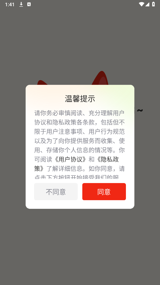 1、下载好呜噜呜噜app后打开软件,仔细查看并同意相关政策与协议,完成初始化操作。