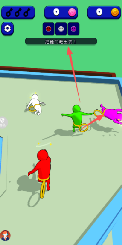 2、游戏核心就是推人对战,点击屏幕就能控制橡皮人移动、发力推击,把对手推出指定区域就算成功规则简单。