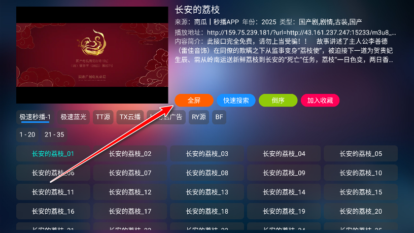 6.看右边,随机点击一个播放源。