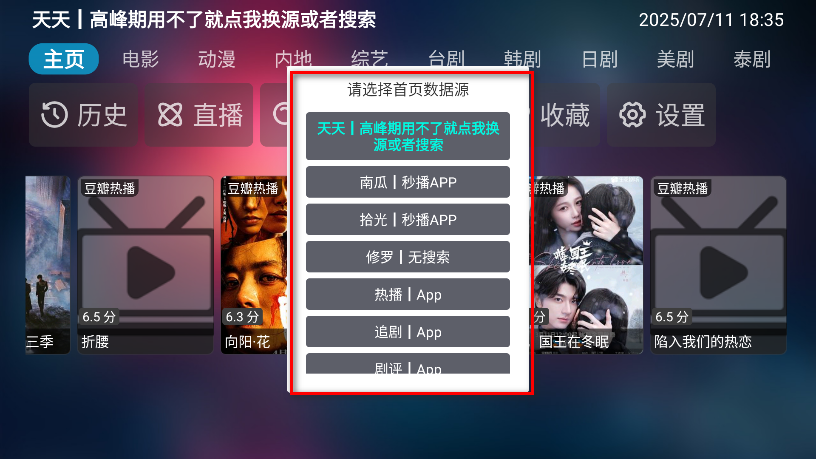 2.可以看到小编给大家提供的乐歌影视是内置源版,如果高峰期看剧卡顿就可以在这里点击切换源了。