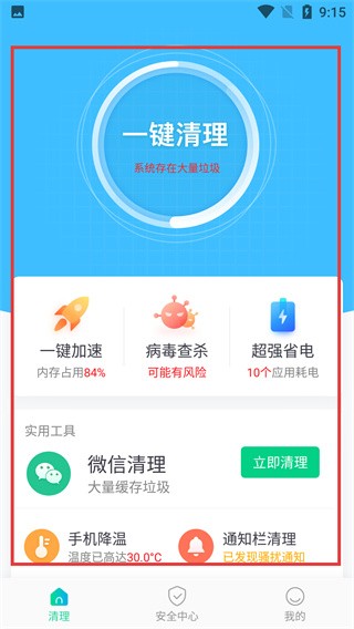 1、智能清理:智能分析并清理垃圾文件,清理缓存与SD卡空间,删除无用安装包和文件,提升内存与手机运行速度。