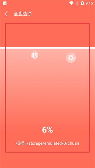 3、进入【全盘查杀】界面后,页面会实时显示扫描进度,耐心等待扫描完成,即可获取设备安全检测结果。