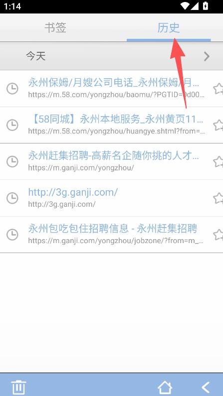 2、进入书签/历史页面,可直接查看过往的浏览记录,快速回顾之前浏览过的内容。
