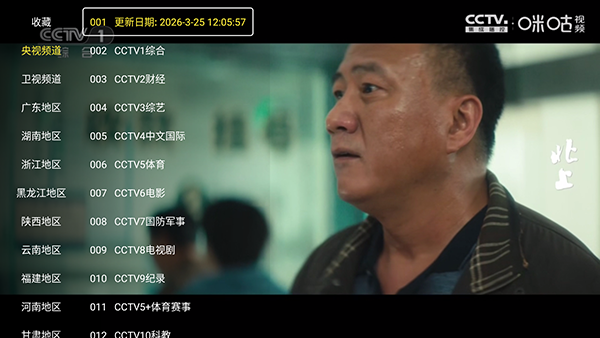 2、点击左侧屏幕或者直接使用遥控器按菜单选项可以唤起电视频道列表。