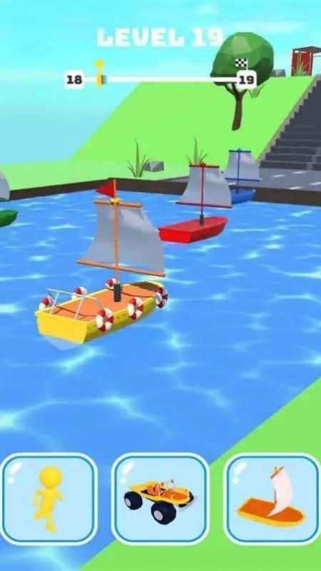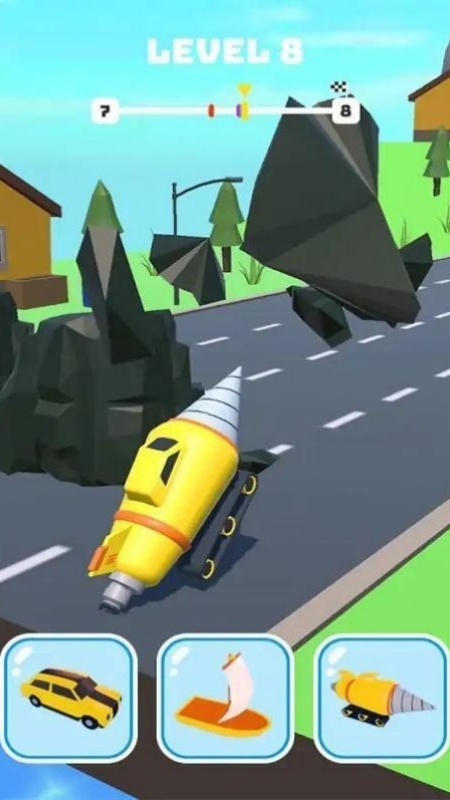1、在游戏中你将化身参赛者,根据赛道情况灵活切换如车辆等多种形态,突破重重障碍冲刺终点。