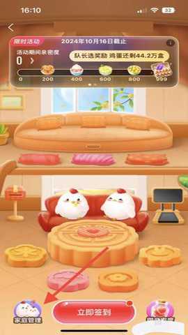 打开支付宝蚂蚁庄园的家庭页面,点击“家庭管理”。