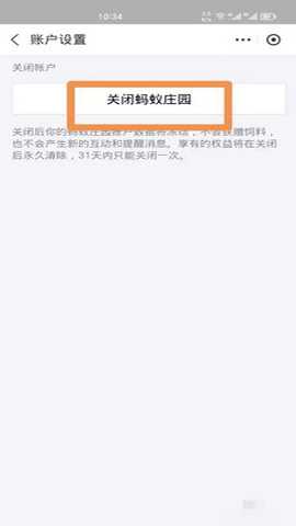 第五步:最后点击页面上的【关闭蚂蚁庄园】即可关闭支付宝的蚂蚁庄园