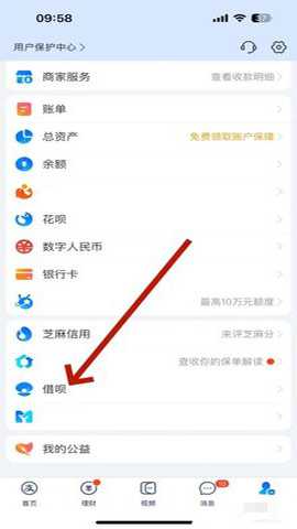进入软件个人中心界面,点击借呗。