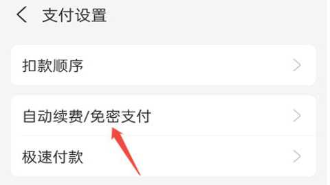 3、在支付设置页面,点击【自动续费/免密支付】选项;
