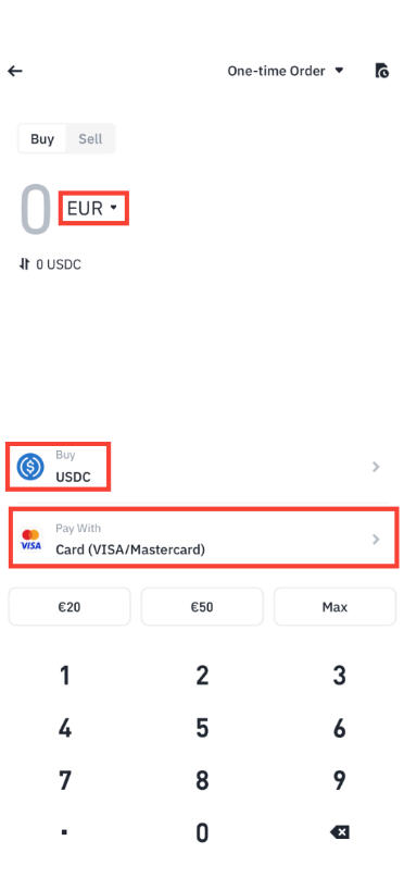 首先,请前往“一键买币”页面。选好当地货币和首选加密货币资产之后,在【支付方式】选项下选择银行卡。