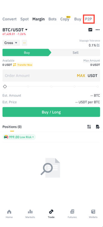 要访问 C2C 交易,请在【交易】页面中选择【C2C】。