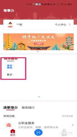 第二步:打开皖事通软件,在首页点击【更多】