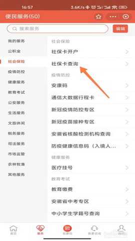 在页面中点击【社保卡查询】。