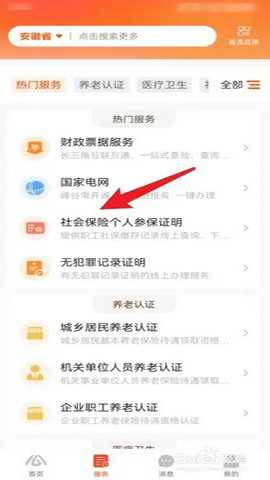在打开的服务页面中,点击社会保险个人参保证明选项