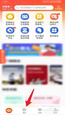 打开皖事通App,点击底部服务图标按钮