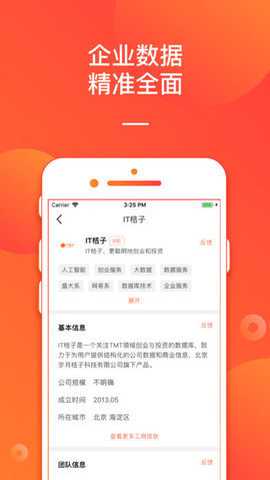 it桔子app是一款泛IT行业风险投资信息内容的数据库,用户可以快速的查询企业的基本信息,以及一些重要的信息内容,关于公司的一些员工福利,纠纷,股份占有,注册资本都可以看到,你可以快速的了解一家公司,这是你准备入职投资之前,都需要去了解的信息。