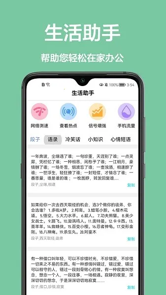 3. 附带生活助手功能,可测速、看热点、刷冷笑话,实用又能打发时间。