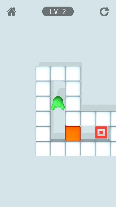 1、通过手指滑动屏幕控制方块移动方向,将所有箱子推到指定位置完成关卡。