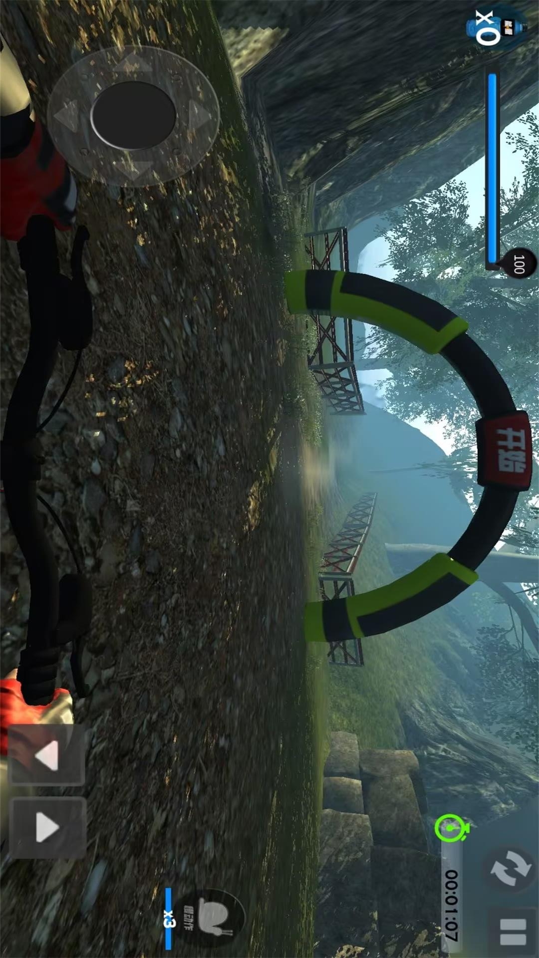 1、打造超真实的山地骑行场景,泥土飞溅、树木掠过,就像真的在山地里骑车,代入感十足。